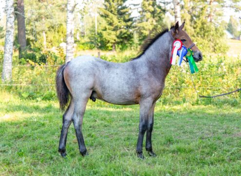 Kuula on kaksivuotias hyvä käytöksinen ruuna. Kasvanut laumassa, mutta tottunut ihmisten käsittelyyn. Oikein utelias ja seurallinen varsa. Opetettu ajolle ja toimii siinä jo mukavasti. Kuulalla on vahva rakenne, joten kantaa hyvin aikuisen ratsastajan aikanaan. Sk. nyt 142cm ja kasvanee vielä muutaman sentin. HWSD:N/N.