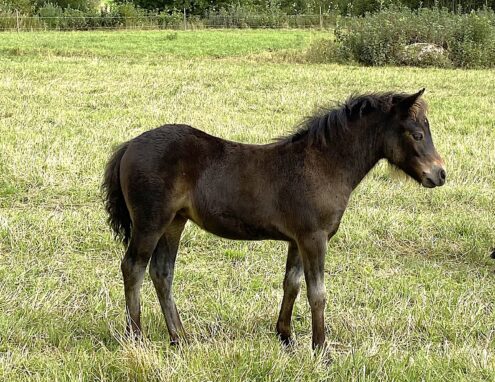 Tessa on 1v. kimo dartmoortammavarsa. Emänsä ensimmäinen varsa. Tessa on pirteä ja reipas varsa. Laiduntaa isossa laumassa ja valmis muuttamaan heti uuteen kotiin. Tässä hyväsukuinen varsa moneen käyttöön ja jalostukseen. Aikuiskoko n. 120cm.